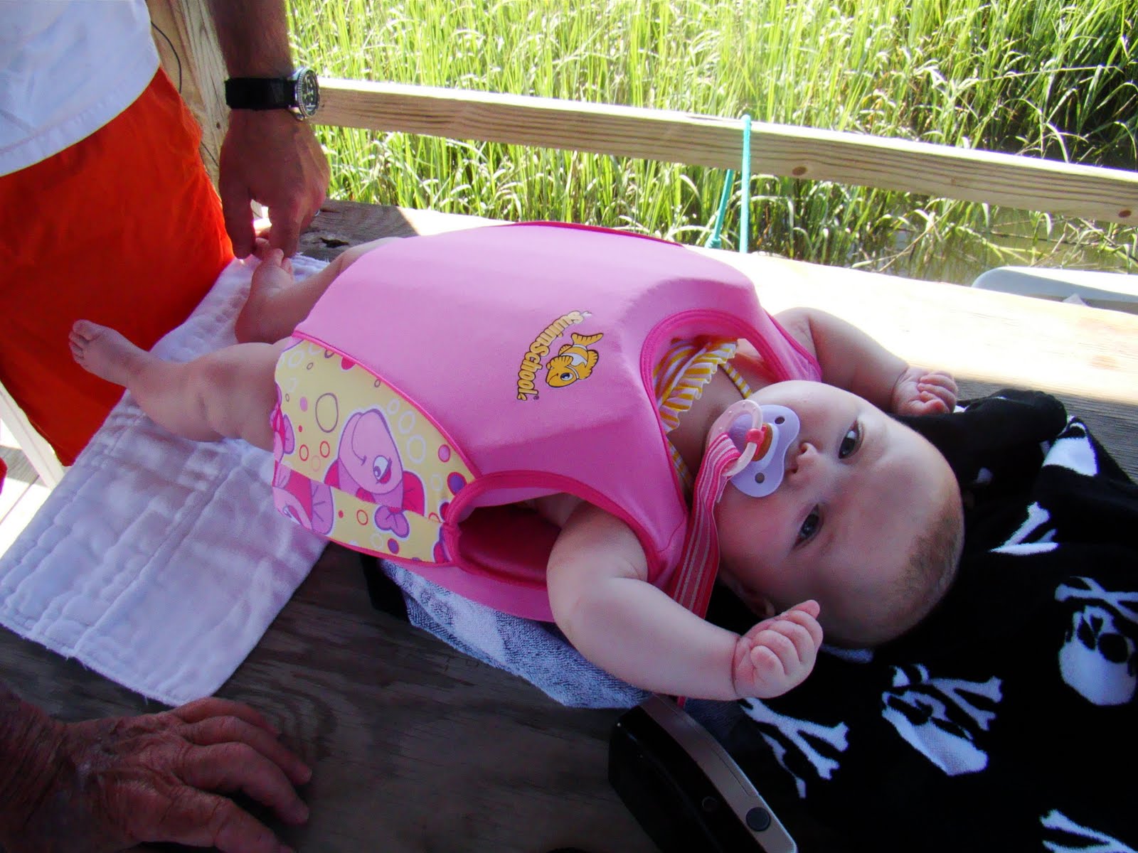 We got BG dolled up in her little suit for her first boat ride. Which she promptly slept through. Super fun.